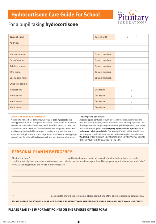 An information booklet for parents to help you understand the hydrocortisone Sick Day Rules for your child with adrenal insufficiency.
