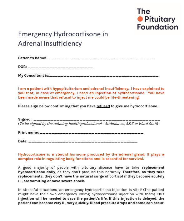 If a healthcare professional is refusing to give you hydrocortisone, you can ask them to sign this form to evidence their decision. This form also clearly states your condition and why you need hydrocortisone.